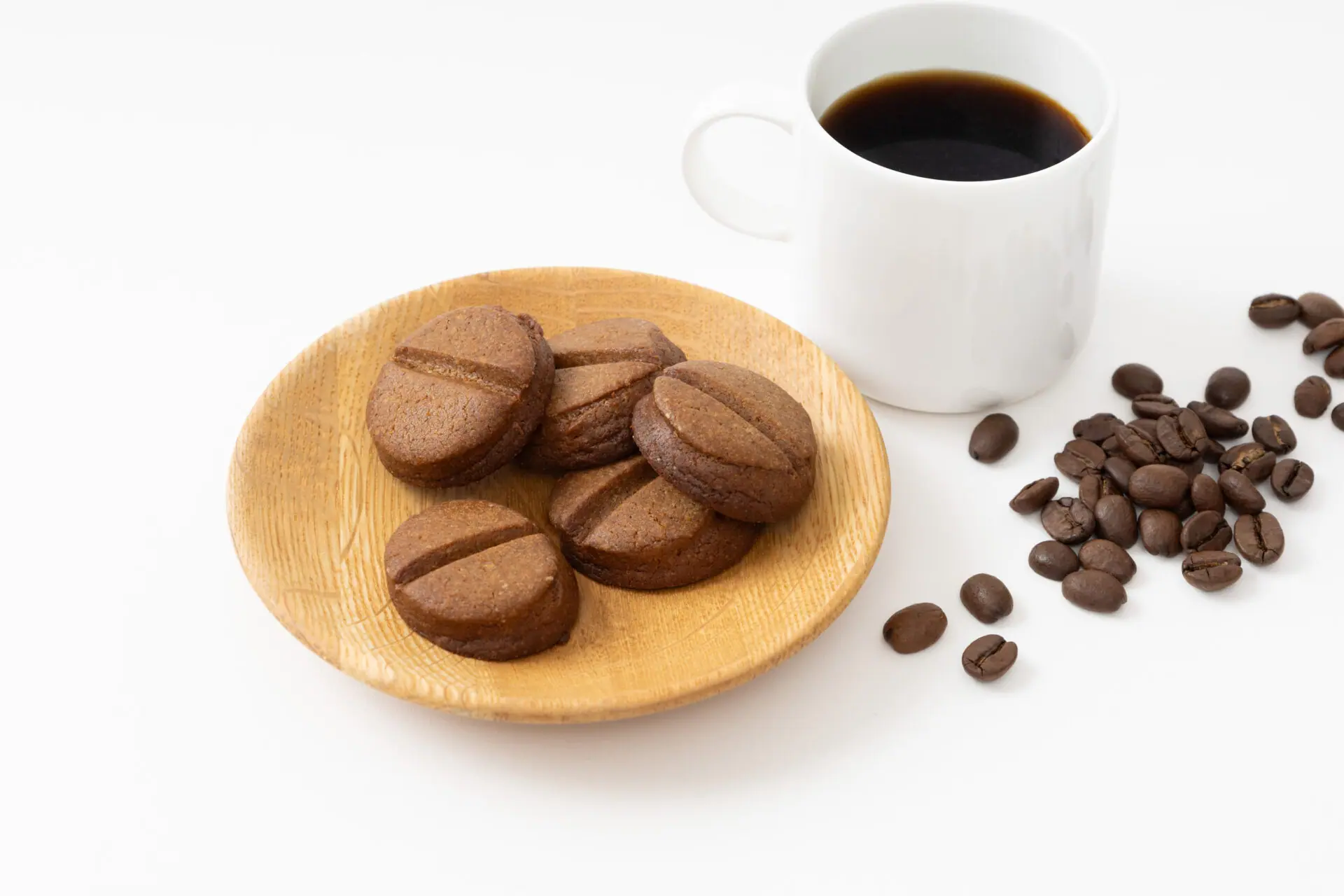 盛岡珈琲物語は、コーヒーのほろ苦い味わいが楽しめるひとくちサイズのクッキーです。 小麦粉は100%岩手県産を使用しており、かわいらしいコーヒー豆の形は、ひとつひとつ手作りです。コーヒーと一緒にお楽しみください。