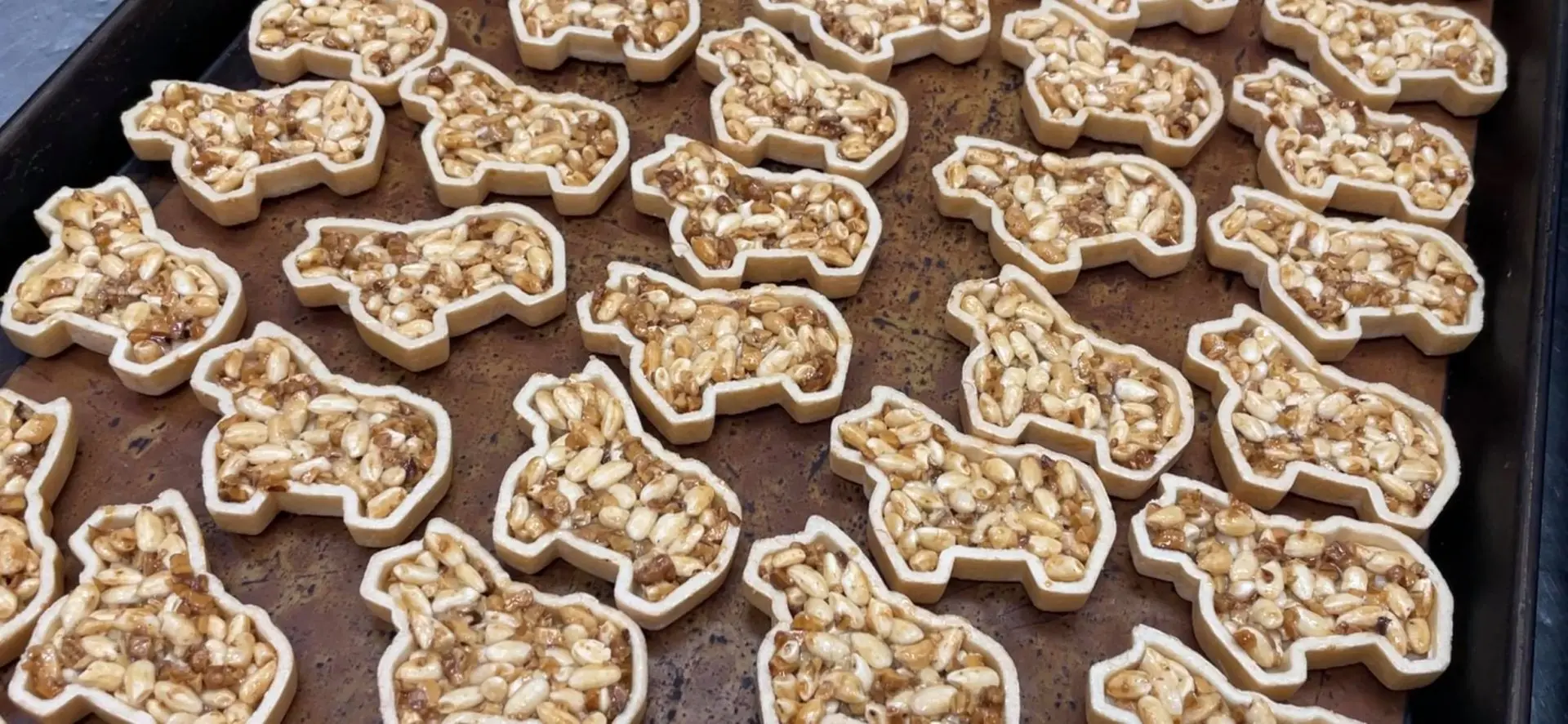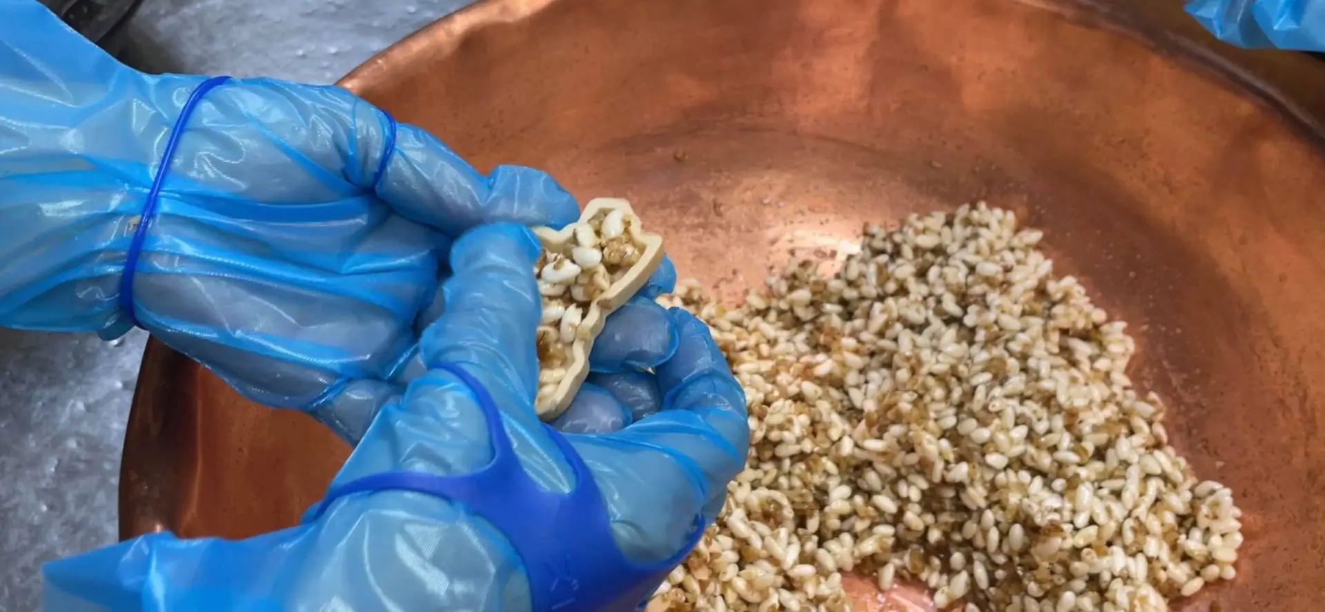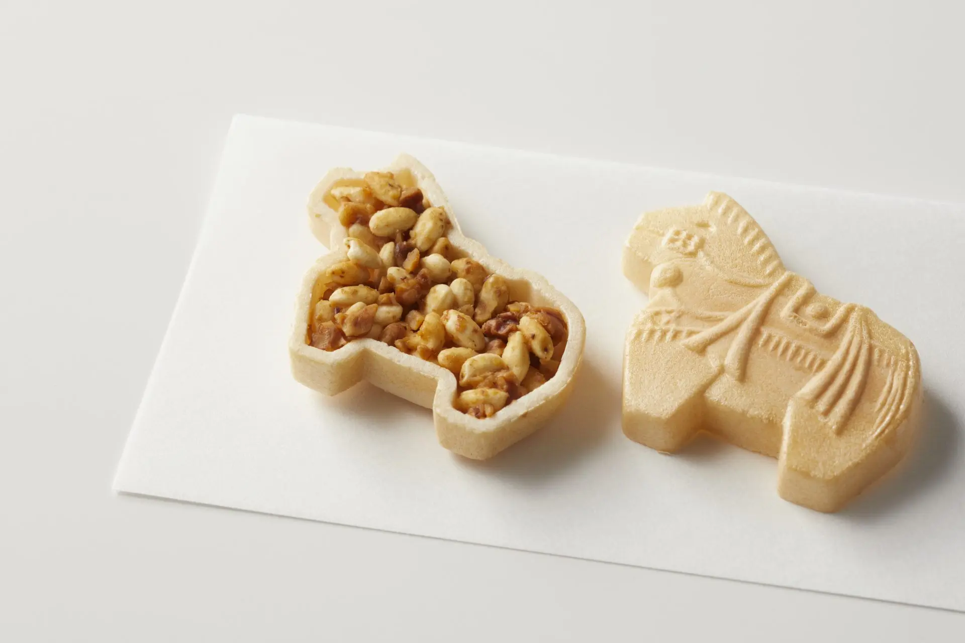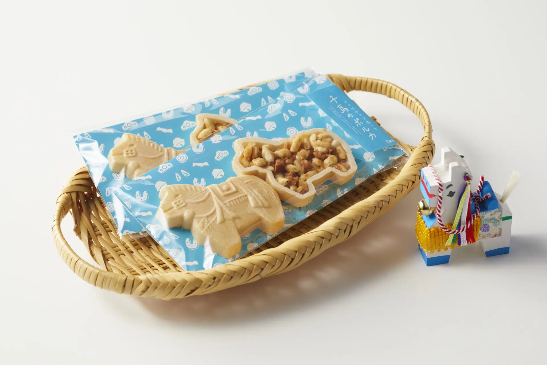 馬の守り神である蒼前神社へ参拝する行事「チャグチャグ馬コ」。楽しくチャグチャグと歩く馬コをイメージした最中皮に、くるみと岩手県産の美味しいお米の香ばしいキャラメルをからめた種を詰めて焼き上げました。サクサクとした軽やかな食感をお楽しみください。