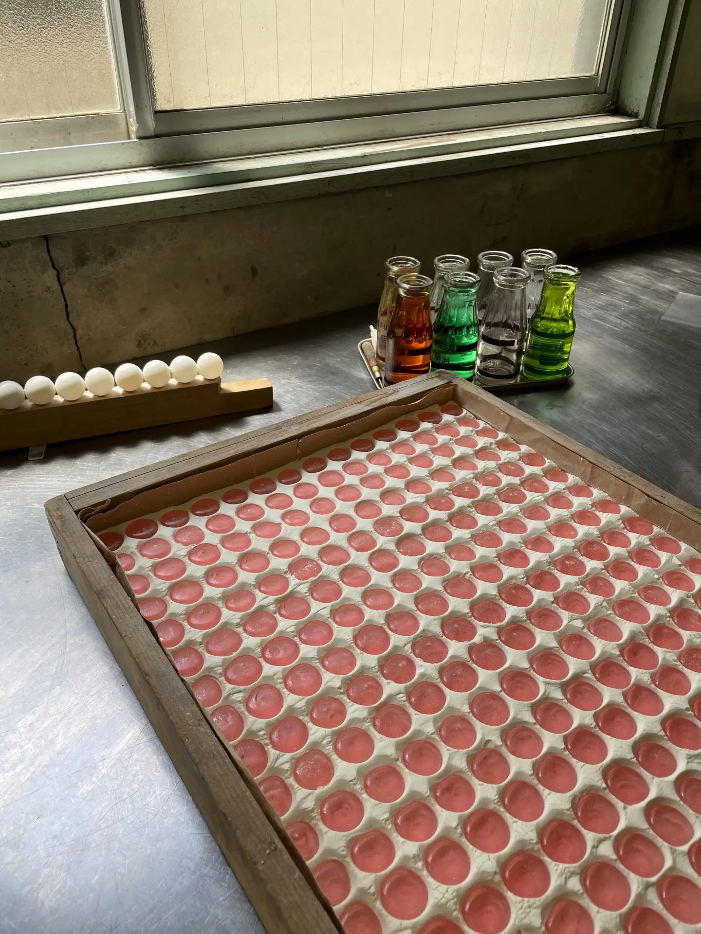 アルコールを飛ばした焼酎を薄い砂糖で包んだ、関口屋菓子舗ならではの盛岡駄菓子です。味は砂糖・コーヒー・山ぶどう・抹茶・ペパーミントブランデー・メロン・ざくろの8種。昔からの製法で、一粒ずつ手づくりしています。とても繊細な砂糖菓子のため、優しくお取り扱いください。