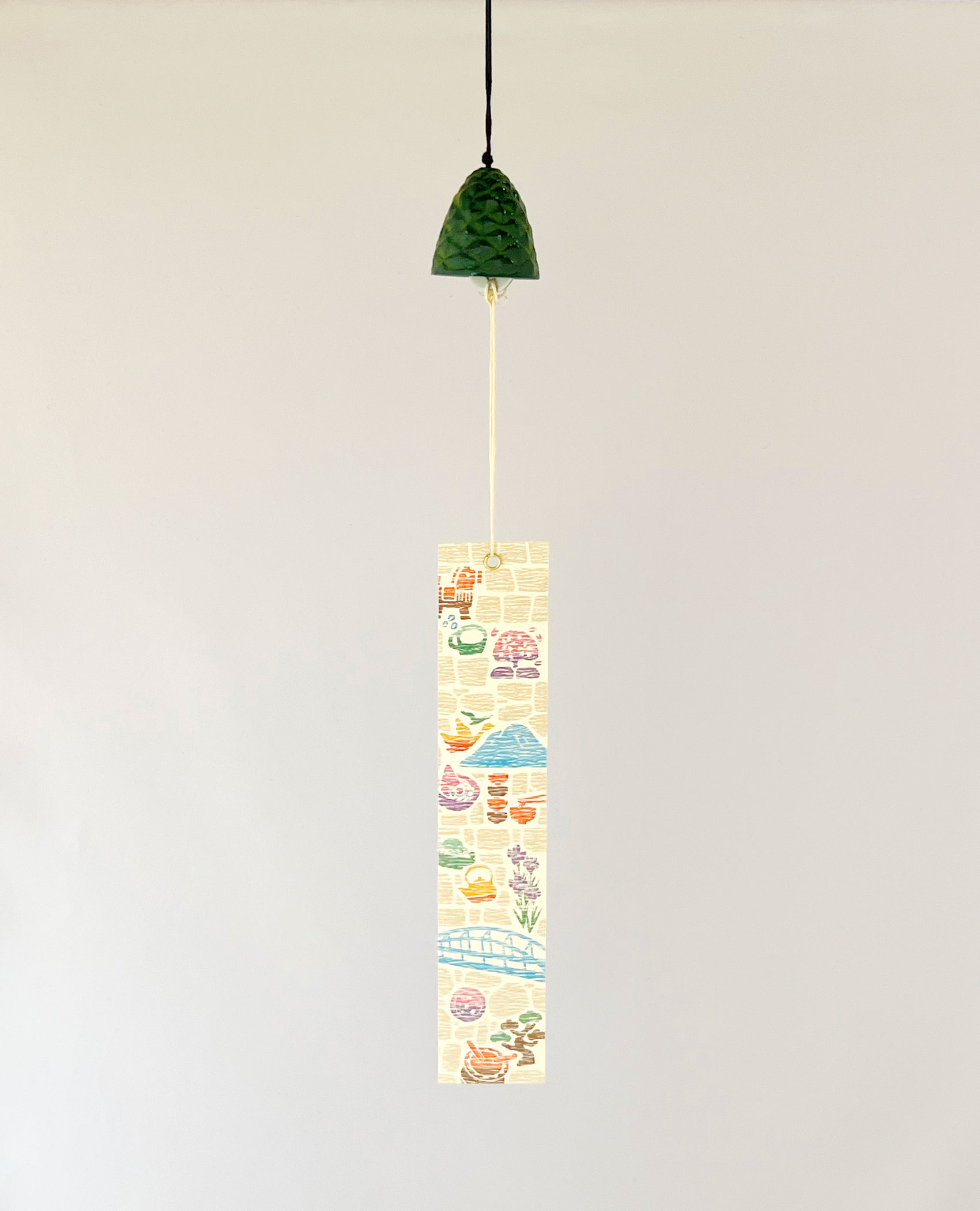 盛岡まち風鈴は、南部鉄器ならではの硬質で涼やかな音色を奏でる風鈴です。縁起物である松をモチーフにした風鈴に、盛岡をイメージしたイラスト入りのオリジナル短冊をつけました。目と耳から涼やかな心地良さをお楽しみください。